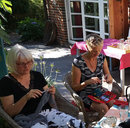 Bei meist selbstgebackenem Kuchen, Kaffee und Tee entstehen kleine und große Kunstwerke. Nicht Leistung sondern Freude und Beisammensein stehen im Vordergrund.